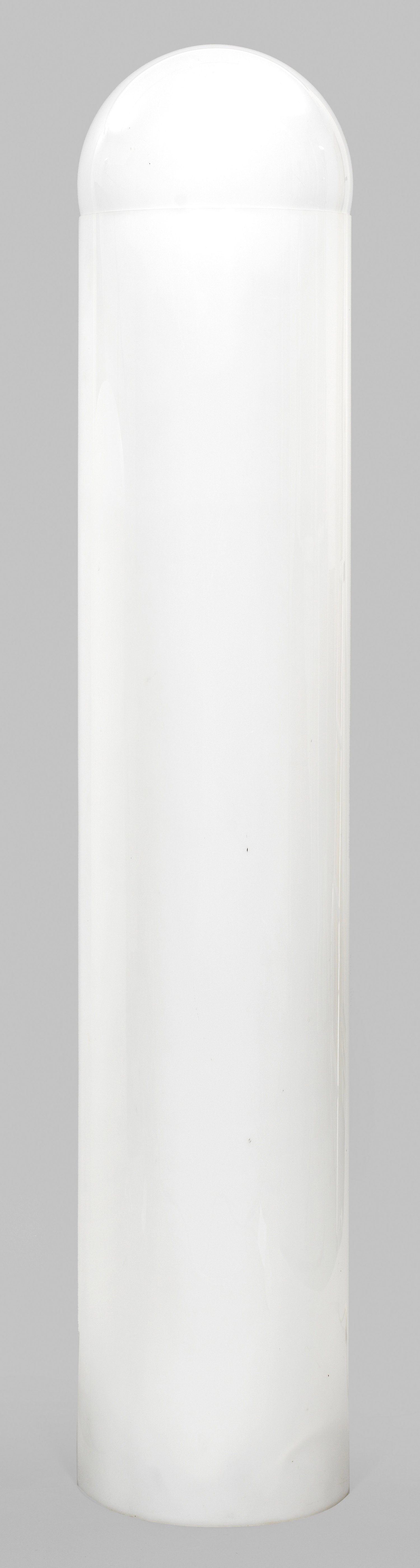 1-flg.; Weißes Glas und weißes Acrylglas. Zylinderförmiger Korpus mit Kugelabschluss. Elektrifiziert. H. 154 cm.
