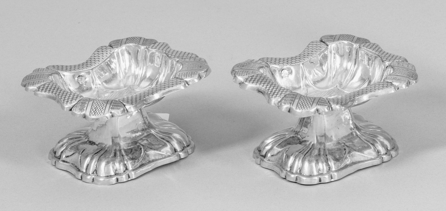 A pair of Biedermeier silver salt cellars. Standard mark 13 lot, assay and partly indistinct master´s mark.