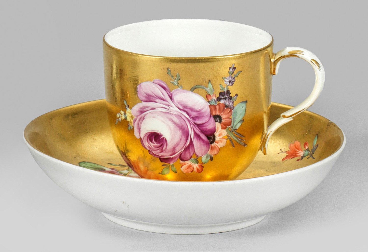 Lot 2500: Goldfond-Ziertasse mit Blumendekor