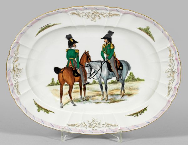 Lot 2581: Ovale Platte mit Darstellung zweier berittener Soldaten