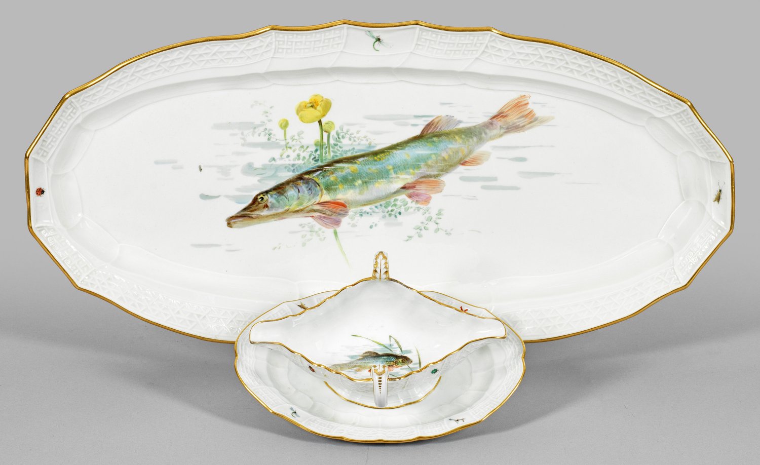 Lot 2685: Sauciere und Fischplatte mit Fischdekor