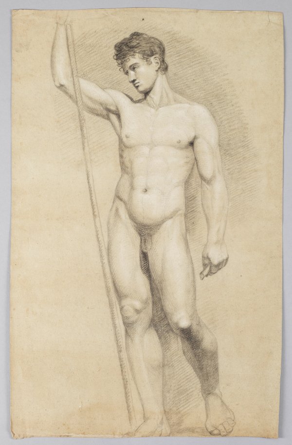Aktstudie eines Jünglings mit Stab