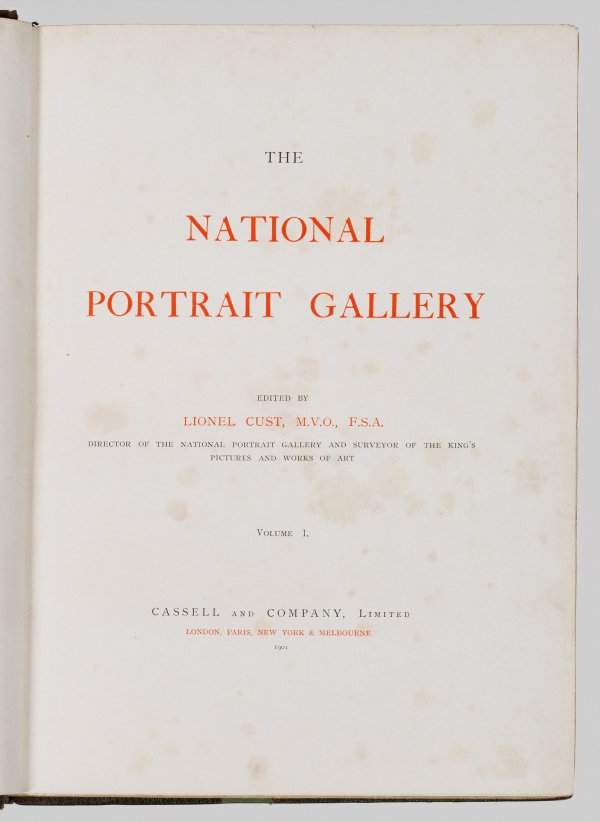 Two volumes of the portraits catalogue of the National Portrait Gallery by Lionel Clust, published in 1901. Limited and numbered. Partially foxed. Not collated.
