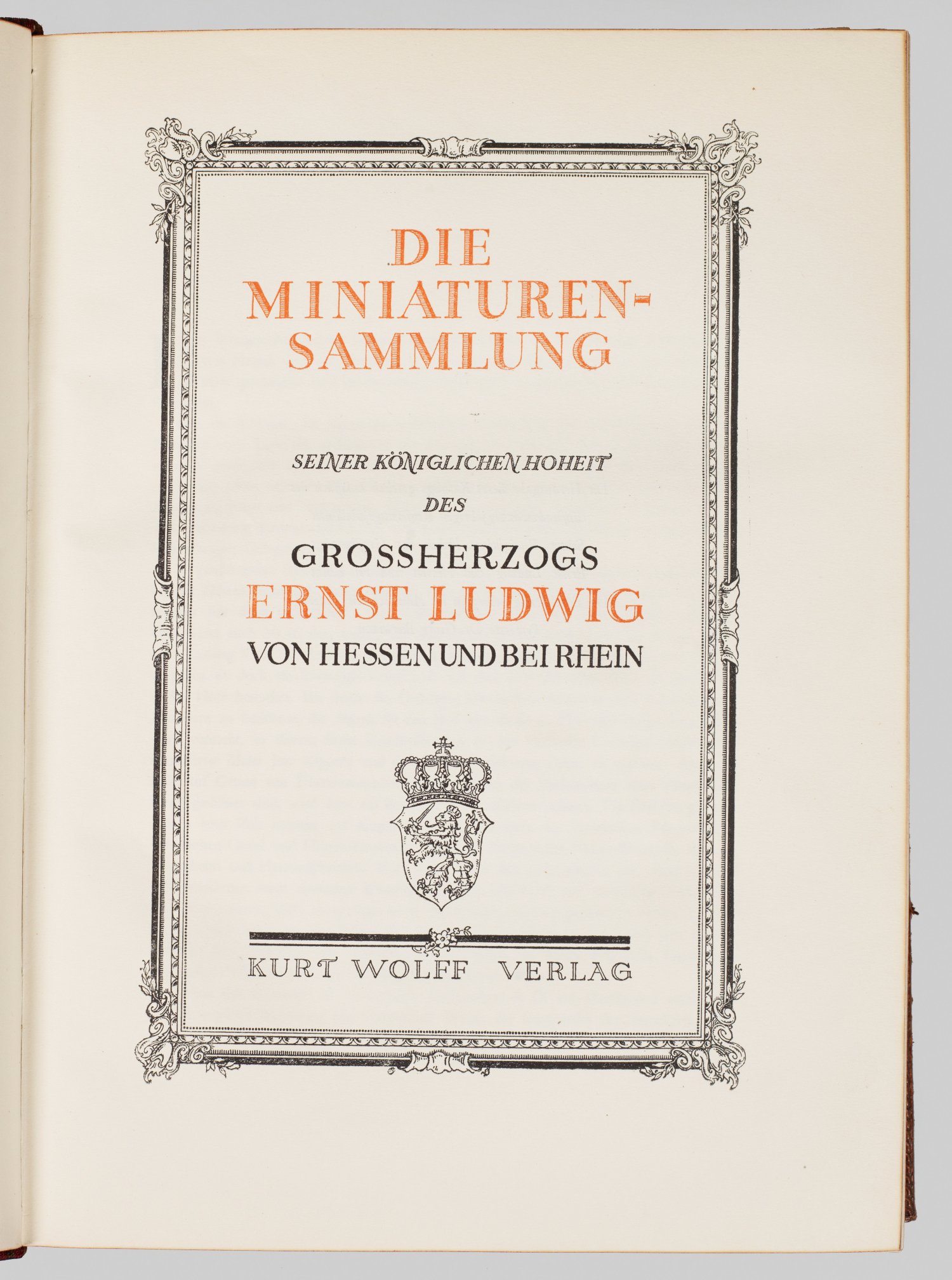 The miniature collection of his Royal Highness the Grand Duke Ernst Ludwig of Hessen and by Rhine published by G. Biermann and A. E. Brinckmann in 1917. Not collated.