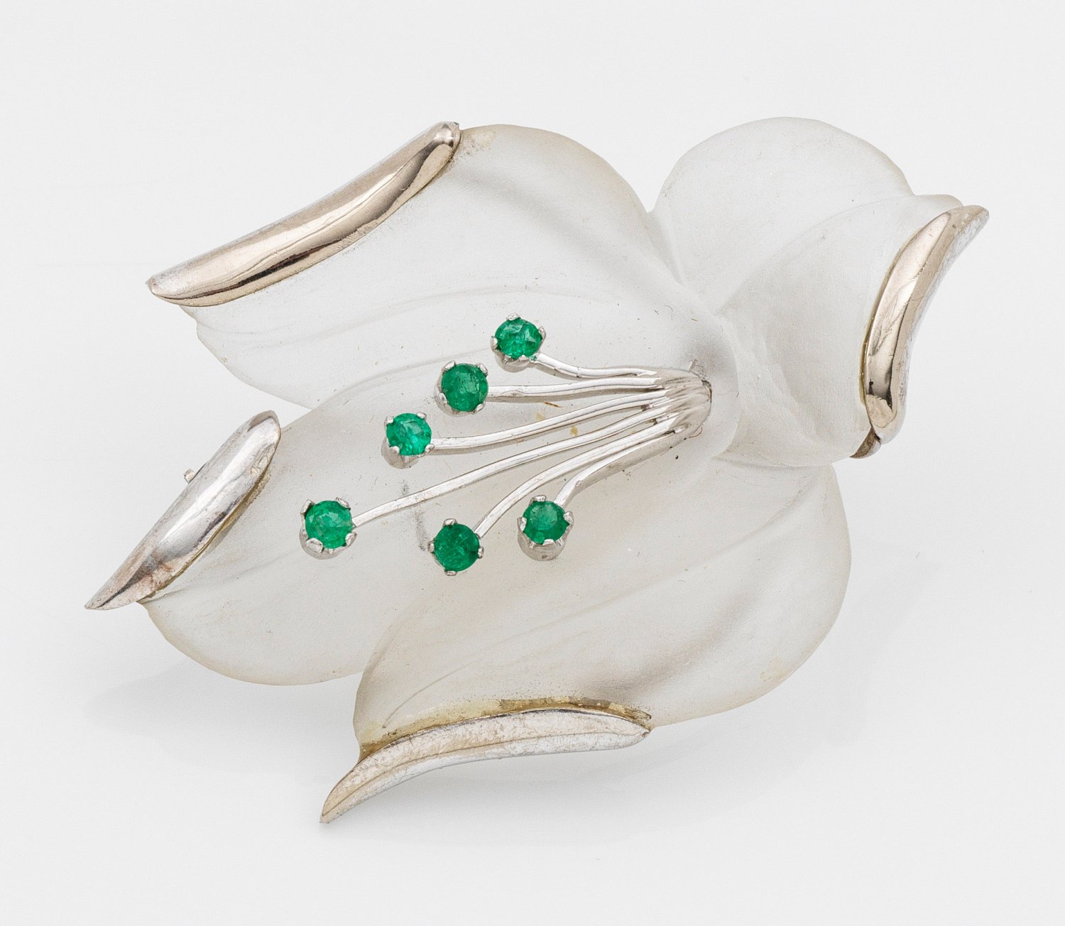 Lot 2870: Lotusblütenbrosche mit kolumbianischen Smaragden