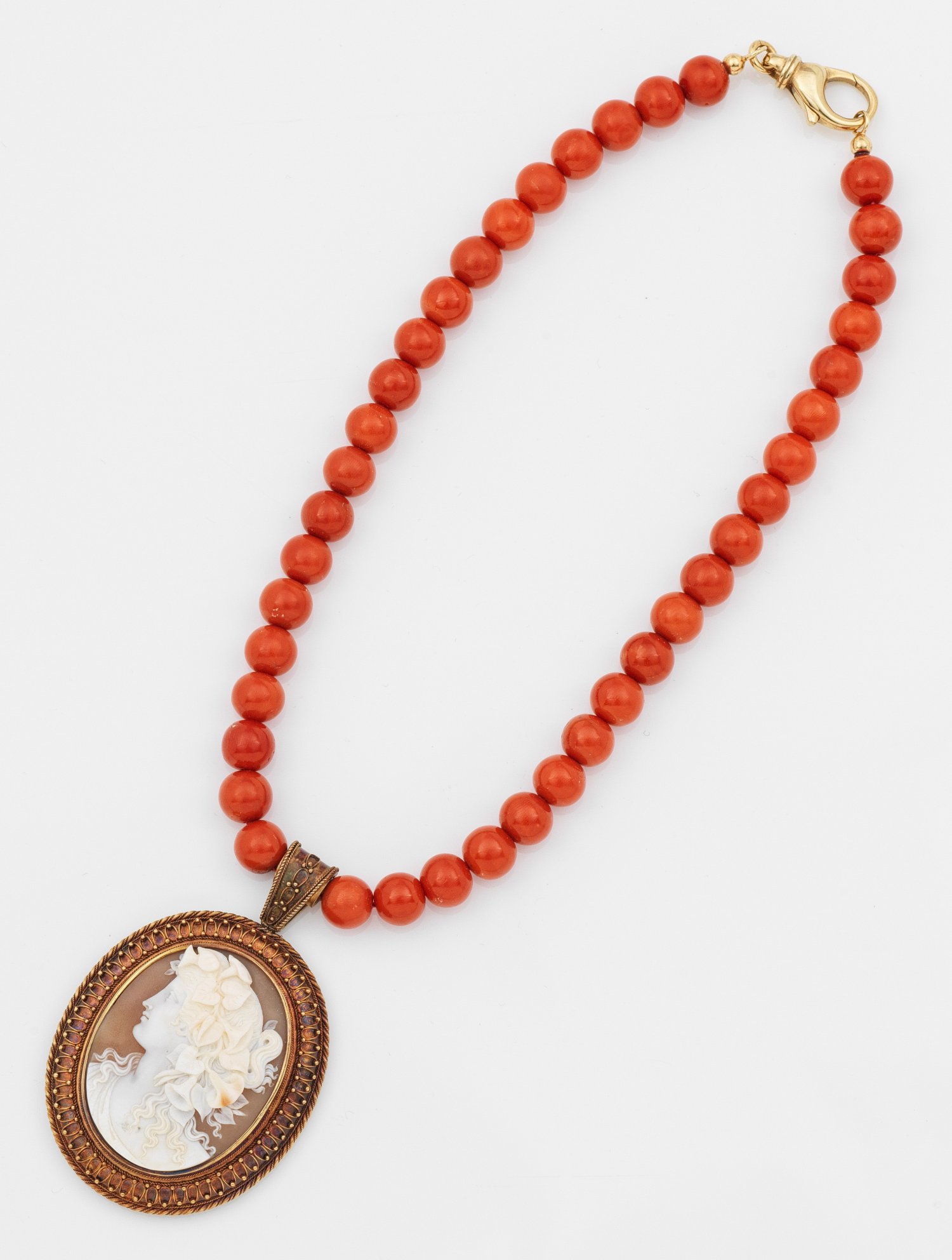 Lot 2887: Korallen-Collier mit Kamee-Anhänger
