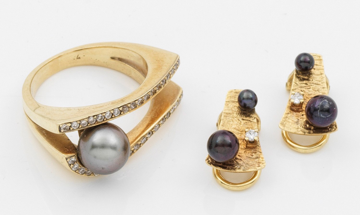 Lot 2975: Ring und Ohrclips mit Perlen und Brillanten
