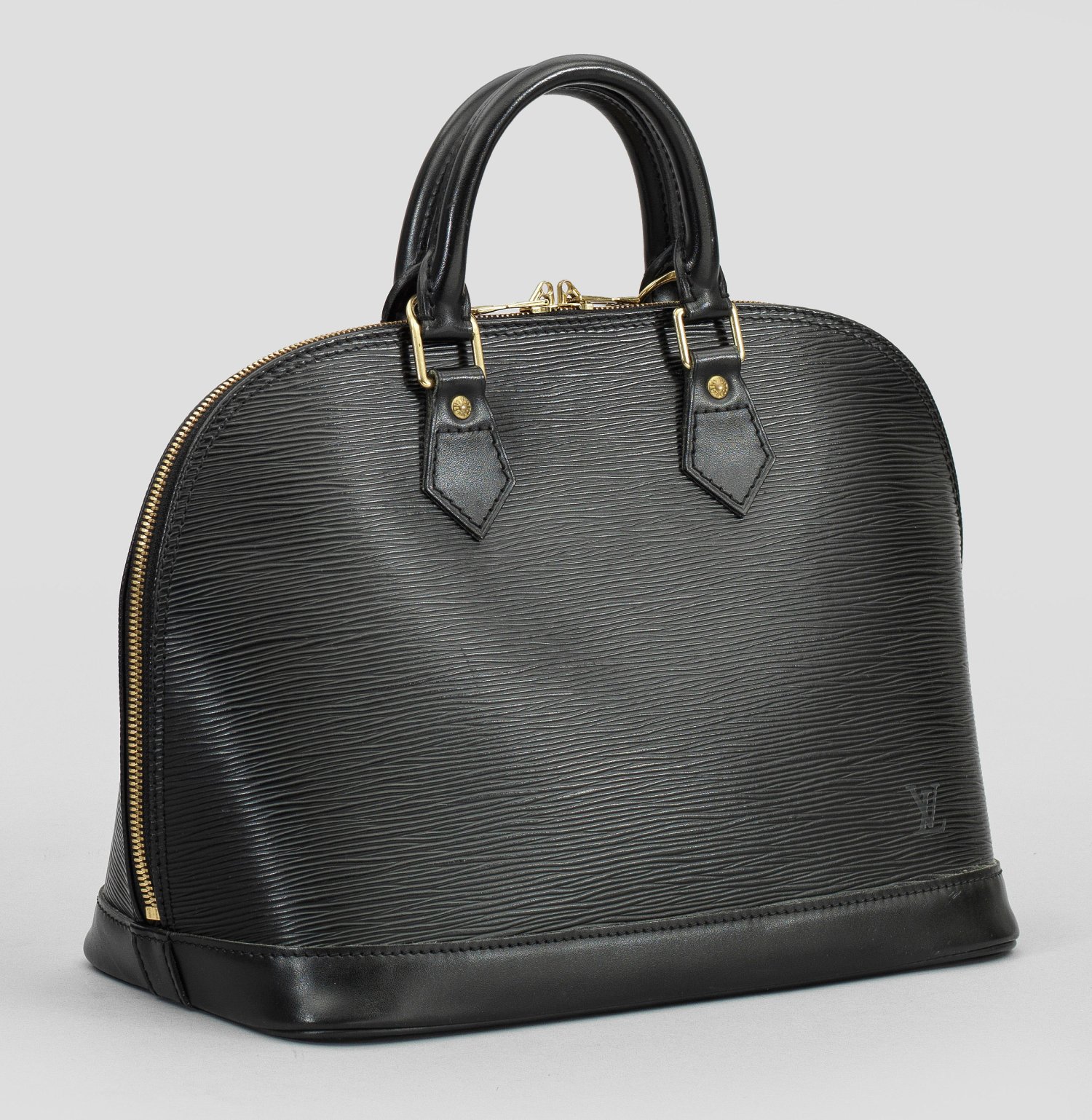 A Vintage black EPI leather bag by Louis Vuitton "Alma". Shoulder strap and lock missing. Manufacturer's mark. Dust bag.