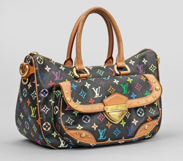 A Vintage handbag by Louis Vuitton "Rita" with multicolor LV monogram. Manufacturer's mark. Wrong leather treatment. Dust bag.
