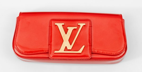 A Vintage red Monogram Vernis clutch by Louis Vuitton "Sobe clutch". Manufacturer's mark. Dust bag.