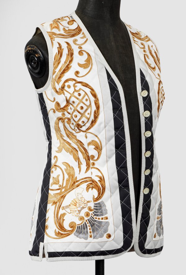 A Vintage vest made from a Hermès scarf by Siggi Spiegelburg. Manufacturer's mark.