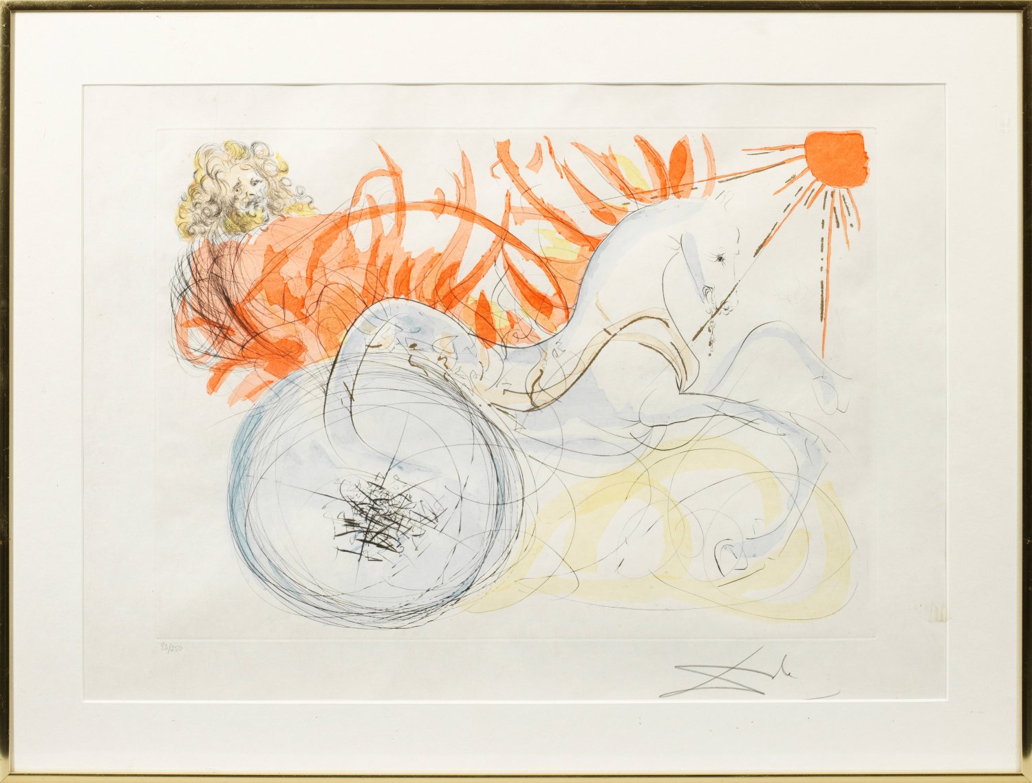 Kaltnadelradierung mit Pochoir und Goldauflage/Japan, 1975. Sign. oder bez. und nummeriert 93/250. Aus der Serie "Our historical Heritage" (Unser historisches Vermächtnis). Wvz. Michler/Löpsinger 758. Plattenmaß 39,8 cm x 56,5 cm. Blattmaß ca. 57,5 cm x 77,5 cm. Rahmen.