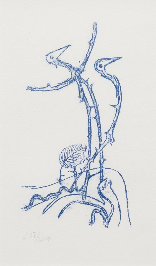 Lithograph in blue on wove paper, 1973. Numbered 237/607. From: Max Ernst: 24 Frottagen. H. Bollinger, Zürich, 1973.