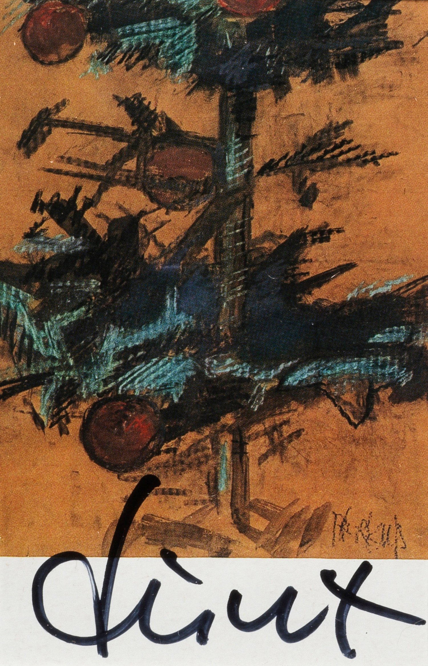 Offset print in colours on thin cardboard (Postkarte). Hand-signed with black felt-pen. Published by Jule Kewenig, Frechen-Bachem. After a crayon drawing on paper from 1980.