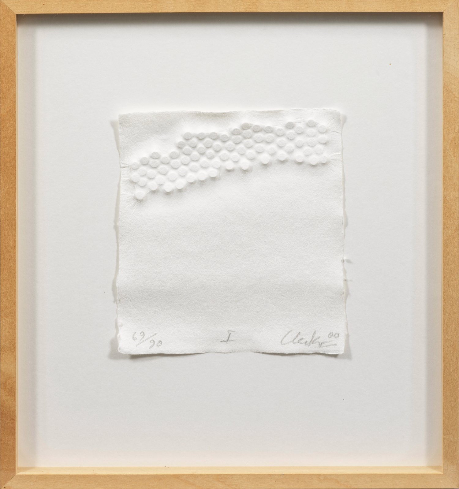 Prägedruck/handgeschöpftes Büttenpapier, 2000. Sign., dat. (20)00, bez. "I" und nummeriert 69/90. Blatt I (von IV) aus der gleichnamigen Serie. Blatt ca. 24 cm x 21 cm. Rahmen.