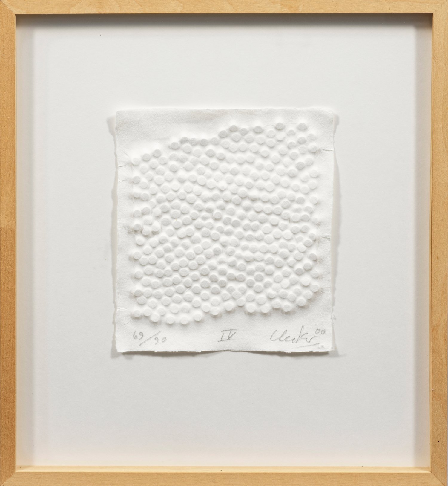 Prägedruck/handgeschöpftes Büttenpapier, 2000. Sign., dat. (20)00, bez. "IV" und nummeriert 69/90. Blatt IV (von IV) aus der gleichnamigen Serie. Blatt ca. 24 cm x 21 cm. Rahmen.