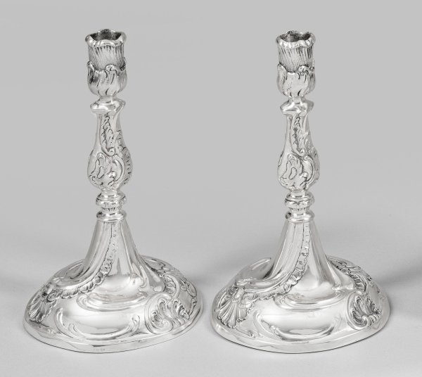 Lot 536: Paar Tafelleuchter im Rokokostil
