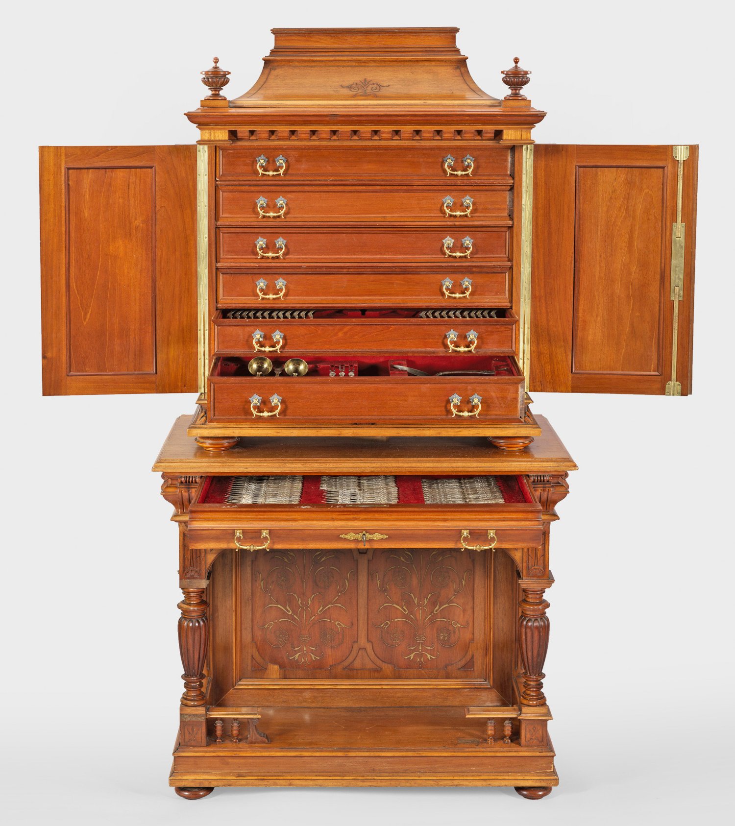 Lot 545: Aufsatzschrank mit umfangreichem Silberbesteck
