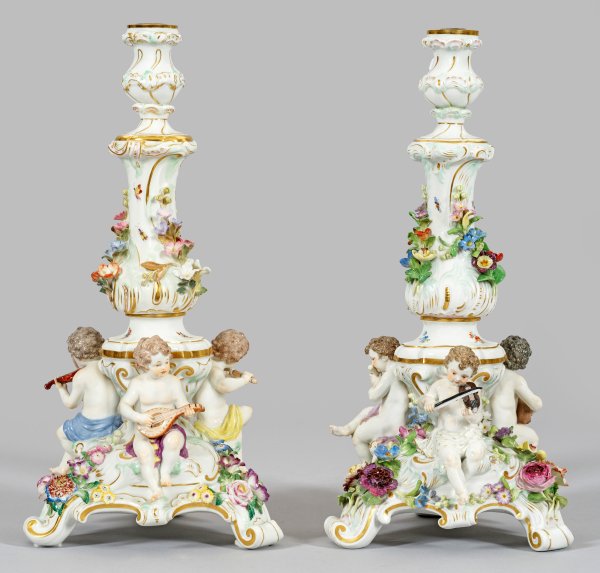 Lot 837: Paar Tafelleuchter mit musizierenden Putten