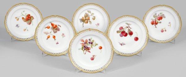 Lot 869: Sechs Dessertteller mit Obst- und Früchtedekor
