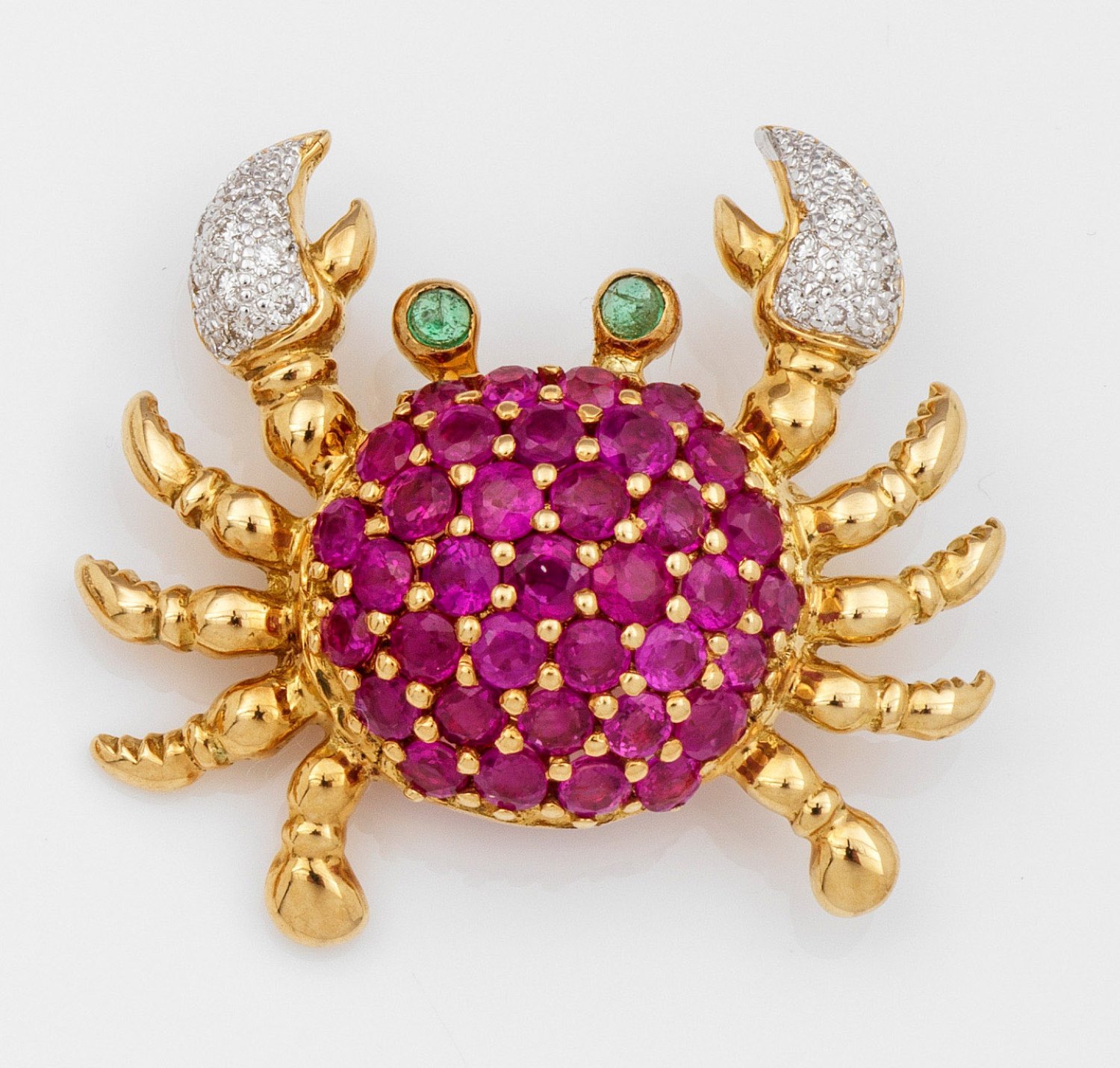 Lot 1072: Kleine Krebs-Brosche mit Rubinen
