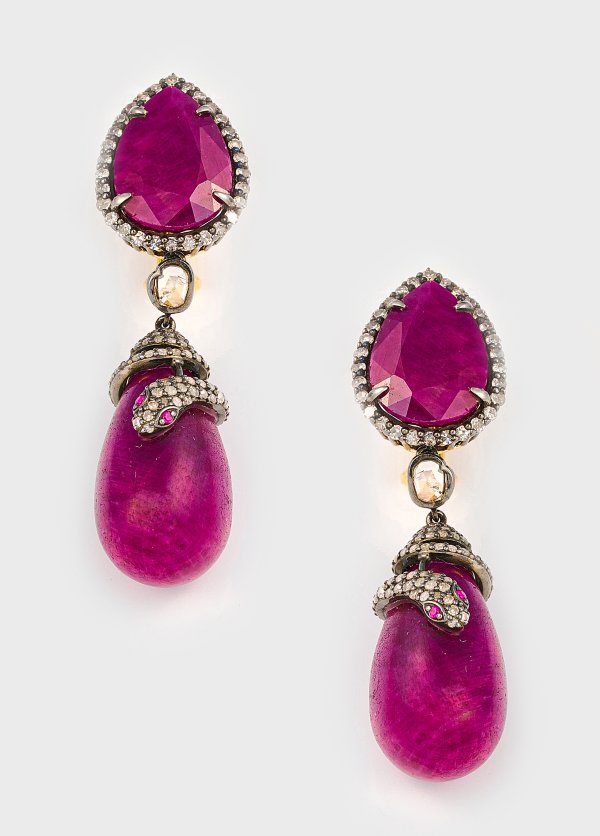 Lot 1073: Paar extravagante Rubin-Ohrgehänge