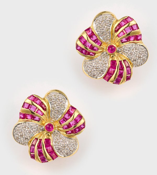Lot 1075: Paar Blüten-Ohrclips im Stil von Van Cleef & Arpels