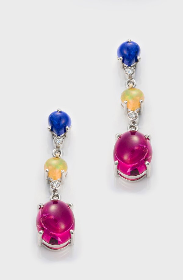 Lot 1110: Paar charmante Opal-Turmalin-Ohrgehänge