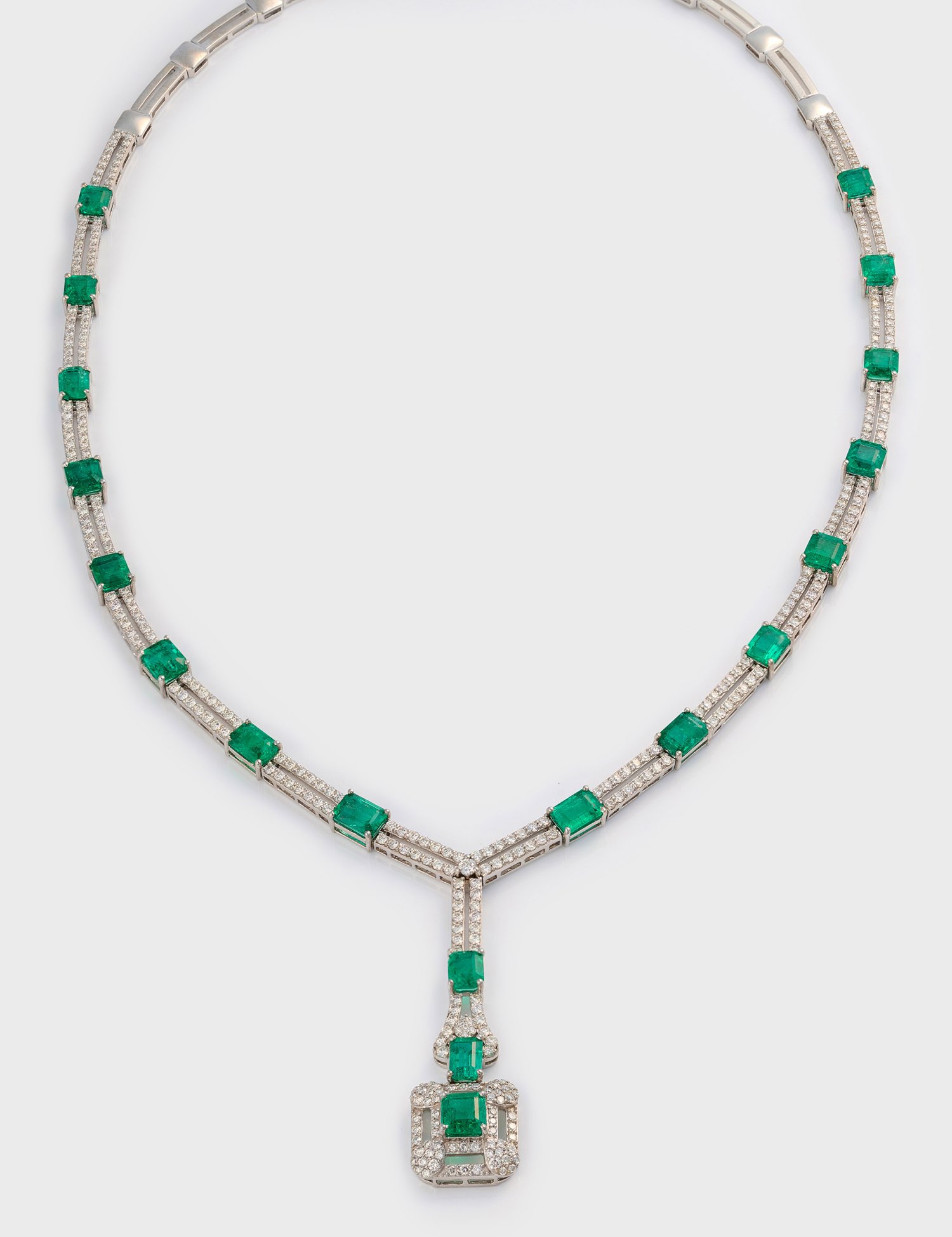 Lot 1122: Hochfeines Sambia-Smaragd-Brillant-Collier