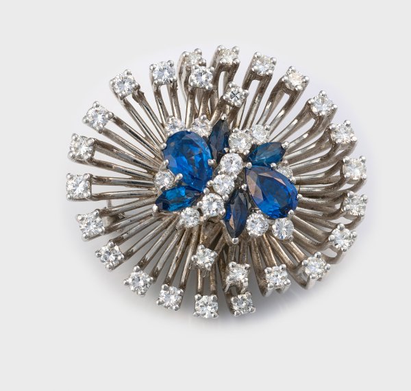 Lot 1133: Cocktail-Brillantbrosche mit Saphiren aus den 1960er Jahren