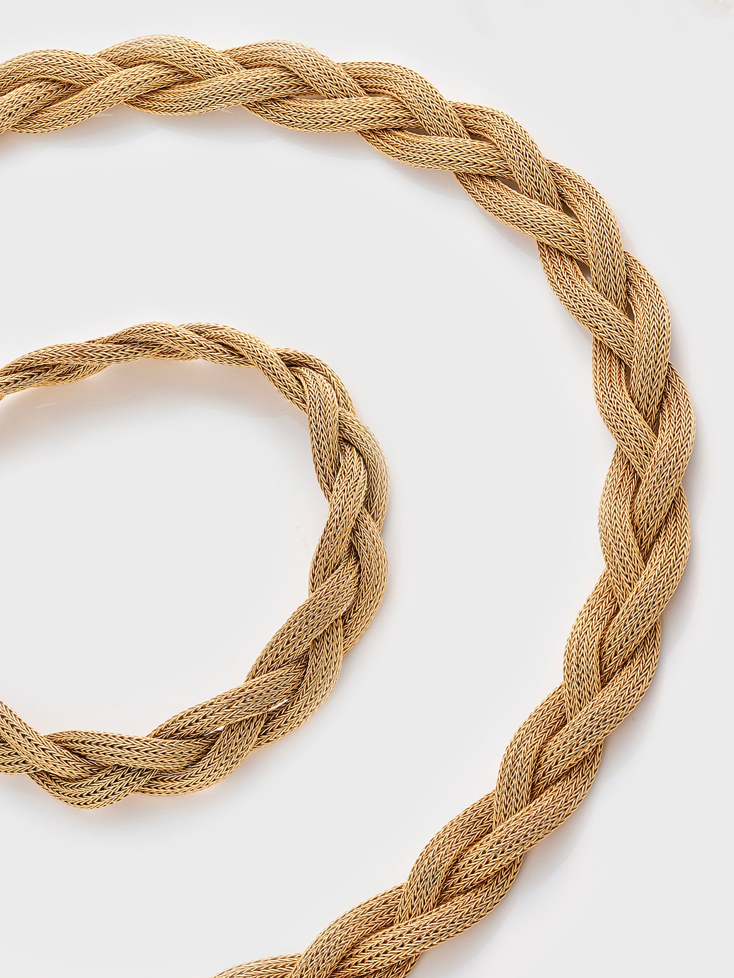 Armband und Collier. Gelbgold, gest. 750. Jeweils im Zopfflechtmuster aus drei Strängen. Herstellerzeichen. Ges.-Gew. ca. 67,29 g.