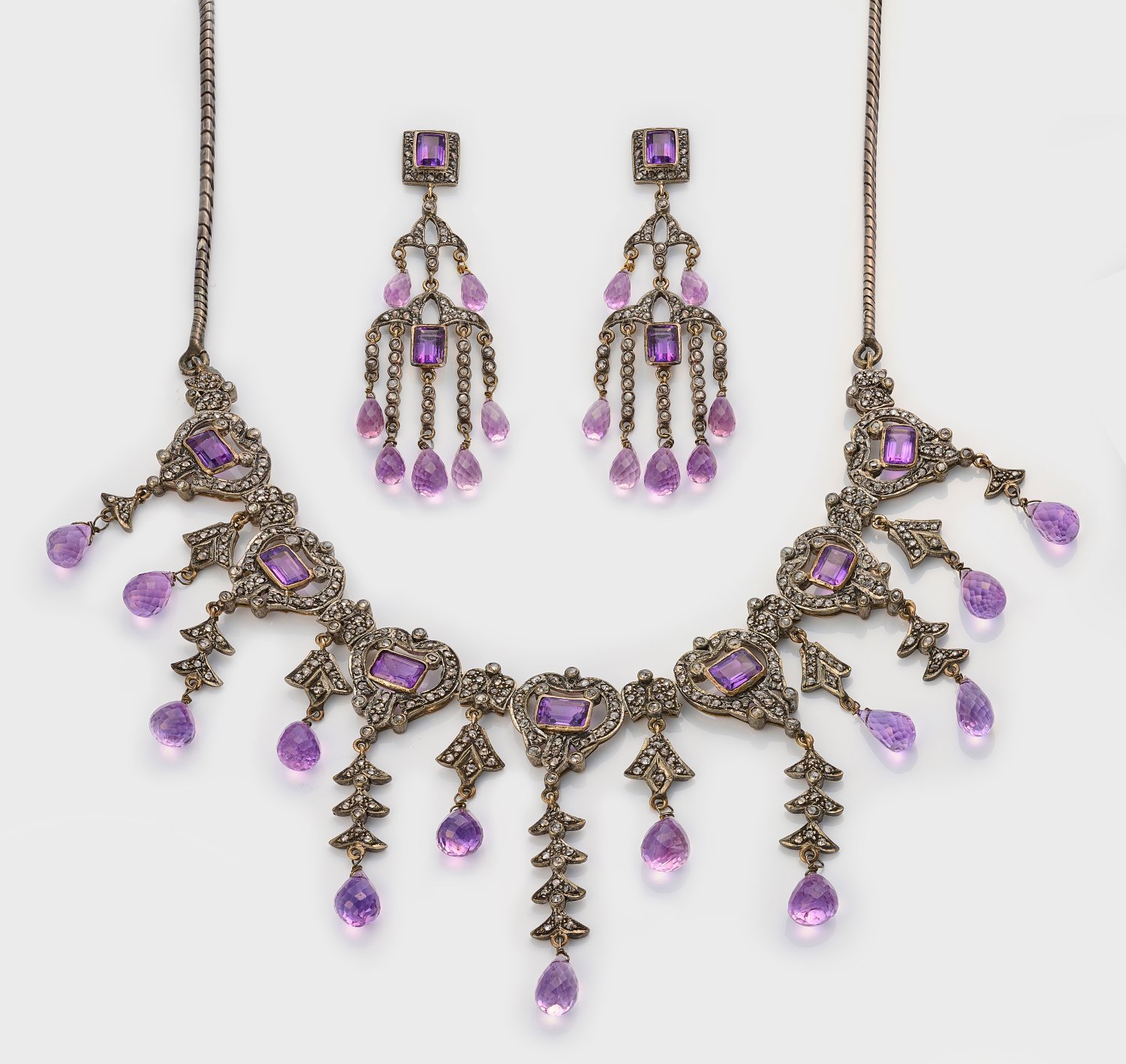 Lot 1259: Belle Epoque Amethyst-Parure