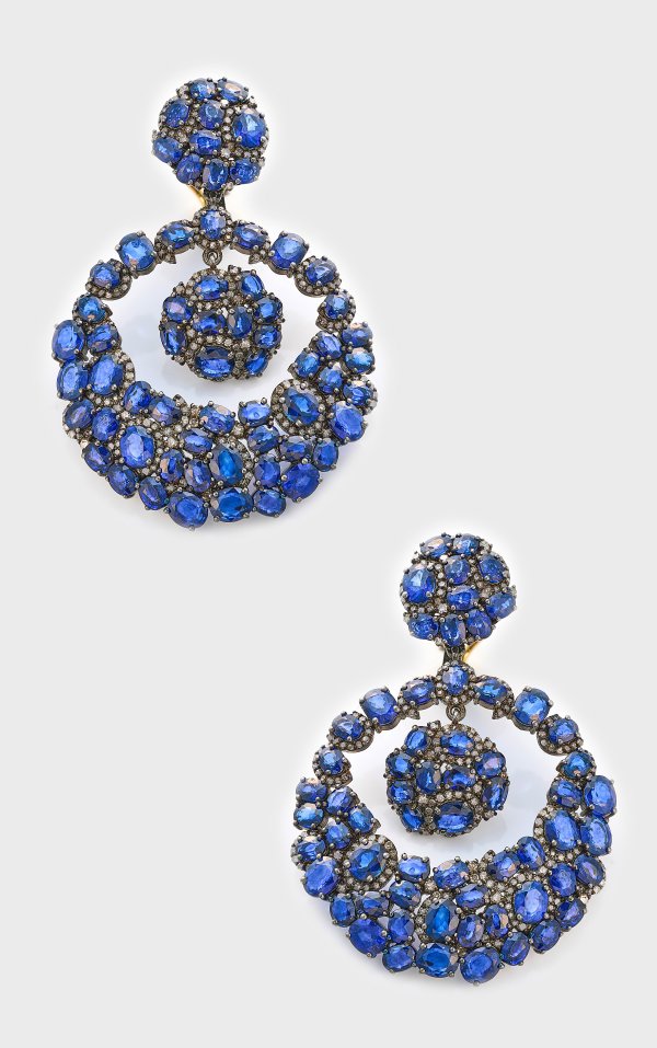 Pair of earrings set with sapphires approx. 34 ct. and diamonds approx. 1,29 ct., in 14 k gold and silver.