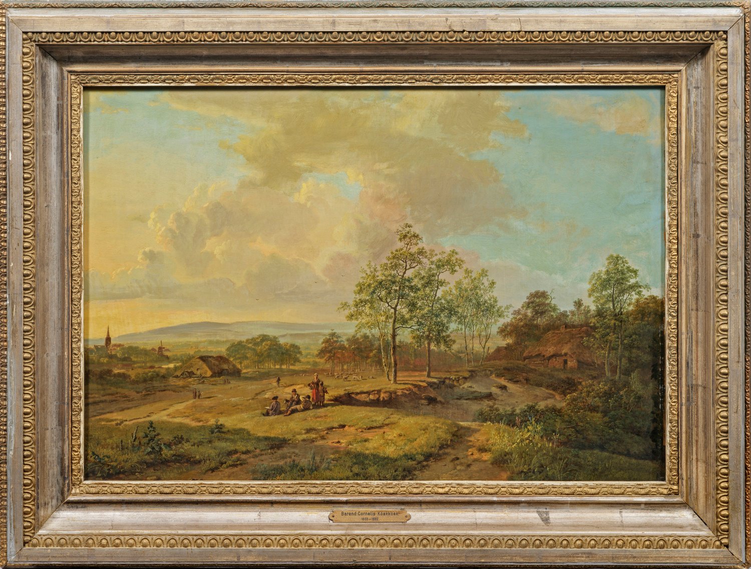 Tiefenräumlicher, atmosphärisch gestimmter, koloristisch subtil gemalter Blick auf eine sanfte, hügelige Landschaft mit Gehöften und einem Kirchdorf. Der an der Amsterdamer Kunstakademie ausgebildete Maler ging 1834 nach Kleve, wo er 1841 eine eigene Akademie gründete, aus der die Klever Romantik hervorging. Koekkoek wurde ab 1829 vielfach mit Auszeichnungen geehrt und gilt als einer der bedeutendsten und erfolgreichsten Landschaftsmaler des 19. Jhs. von internationalem Renommée. Öl/Lwd.; L. u. sign. oder Bez. "B C Koekkoek". 50 cm x 73 cm. Rahmen.