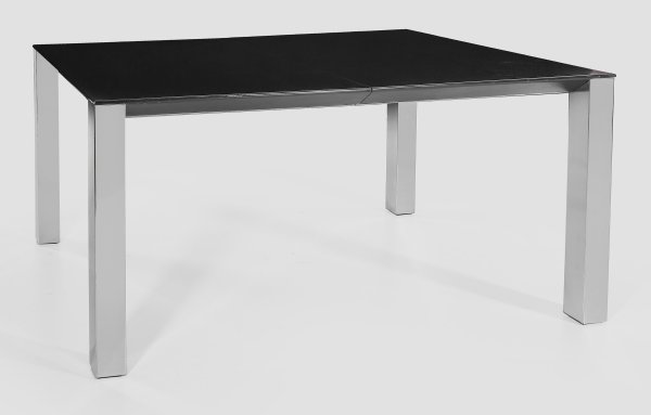 Stahl und ebonisiertes Eschenholz. Kräftige Vierkantbeine als Träger für rechteckige Deckplatte. Eine Einlegeplatte. Herstellerzeichen. Entw. Giovanni Offredi. H. 70 cm. 138/195 cm x 100 cm.