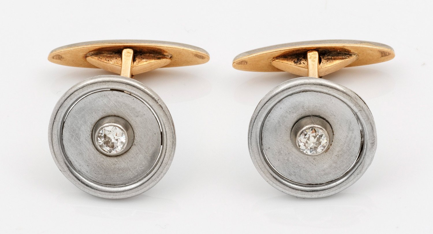 Pair of cufflinks set with diamonds approx. 0,30 ct., in 14 k gold and platinum.