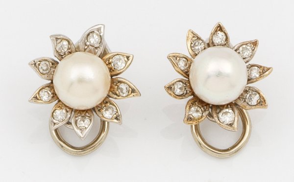 Lot 2207: Paar Blüten-Ohrclips mit Perlen und Diamanten