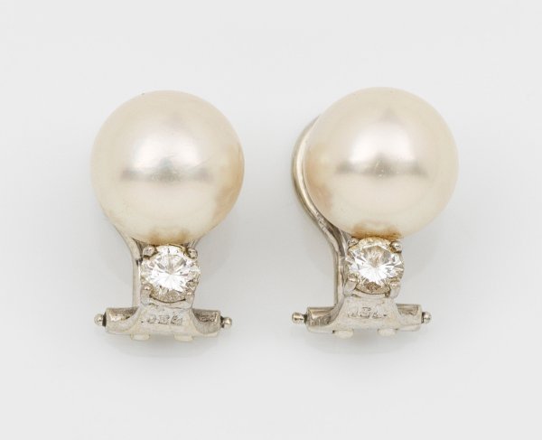 Lot 2208: Paar Perl-Brillantohrclips