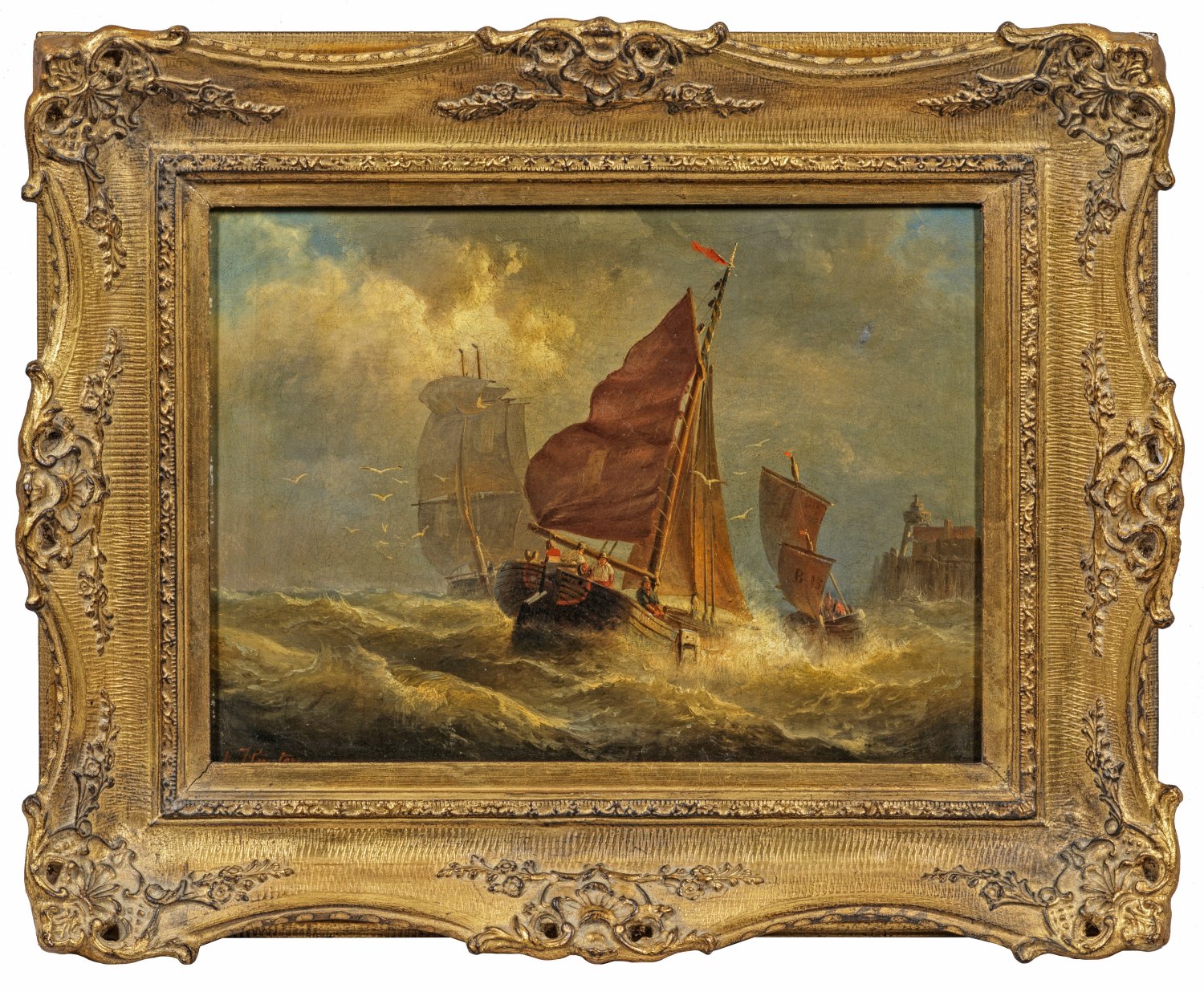 Fischerboote und Zweimaster im Sturm vor der Küste