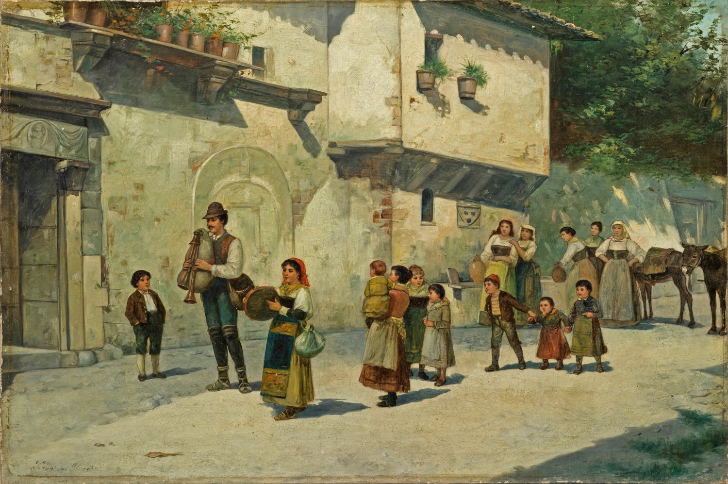 Italienische Straßenszene mit Musikern und Kindern