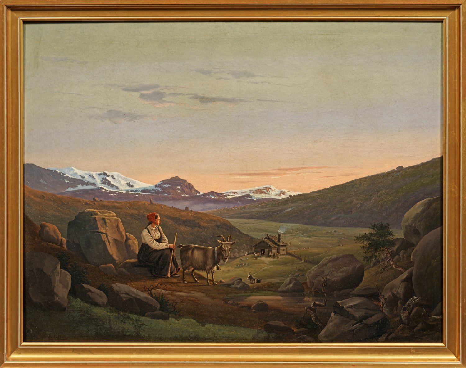Norwegische Landschafft mit Ziegenhirtin im Abendlicht