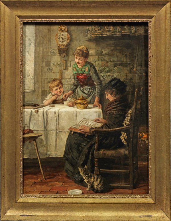 Stimmungsvolles Genrebild Heydens, der an der Kunstakademie Düsseldorf bei Karl Ferdinand Sohn und Eduard Bendemann, 1869 bis 1870 bei Wilhelm Sohn die Malerei studierte. 1876-1916 nahm er an zahlreichen Ausstellungen teil. Öl/Lwd., doubl.; L. o. sign.; 78 cm x 58 cm. Rahmen.