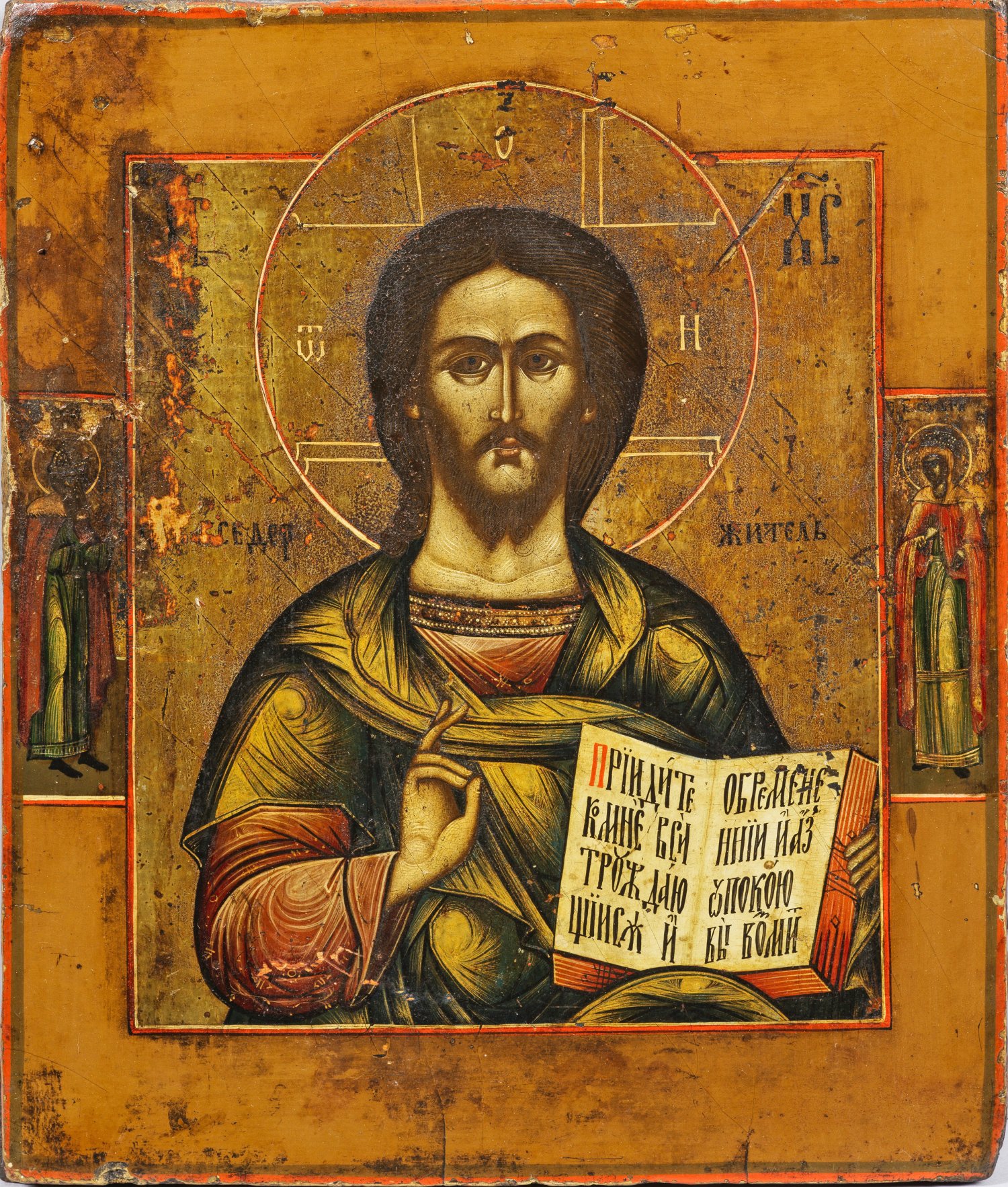 A Russian icon depicting "Christ Pantokrator". Tempera with gold on wood.