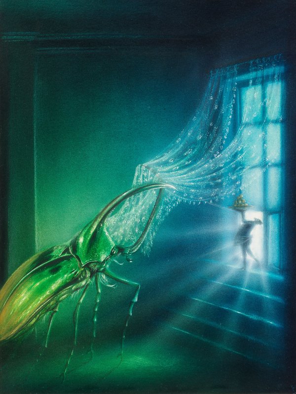 Minutiös, mit effektvollen Glanzlichtern gemalte Komposition Hechelmanns, der an der Akademie in Wien studierte und Meisterschüler von Rudolf Hausner war. Dessen Einfluss und Inspiration als bedeutender Vertreter der Wiener Schule des phantastischen Realismus ist in Hechelmanns Oeuvre eminent. Mischtechnik/Karton. R. u. monogr.; 39,5 cm x 29,5 cm. Rahmen.