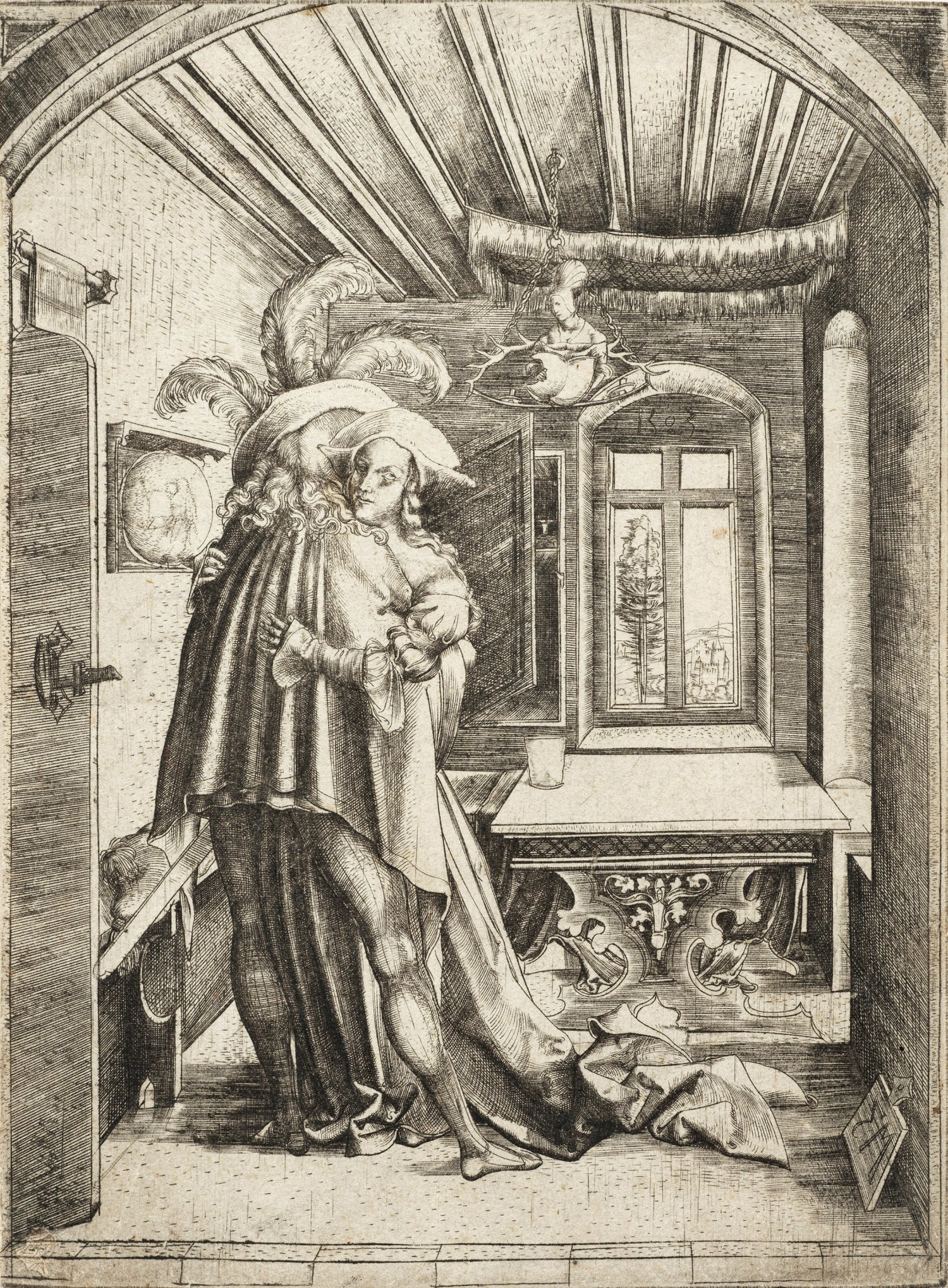 Laut Lehrs handelt es sich bei diesem Blatt unstrittig um die reifste und reizvollste Arbeit Zasingers. Nicht nur die Darstellung der beiden Liebenden ist höchst sensibel und empfindsam geschildert, sondern auch das Interieur wird mit einer besonderen Detailtreue und -liebe wiedergegeben, wie man nicht nur an dem zarten Lüsterweibchen und der feinen Dekoration des gotischen Tisches erkennen kann.