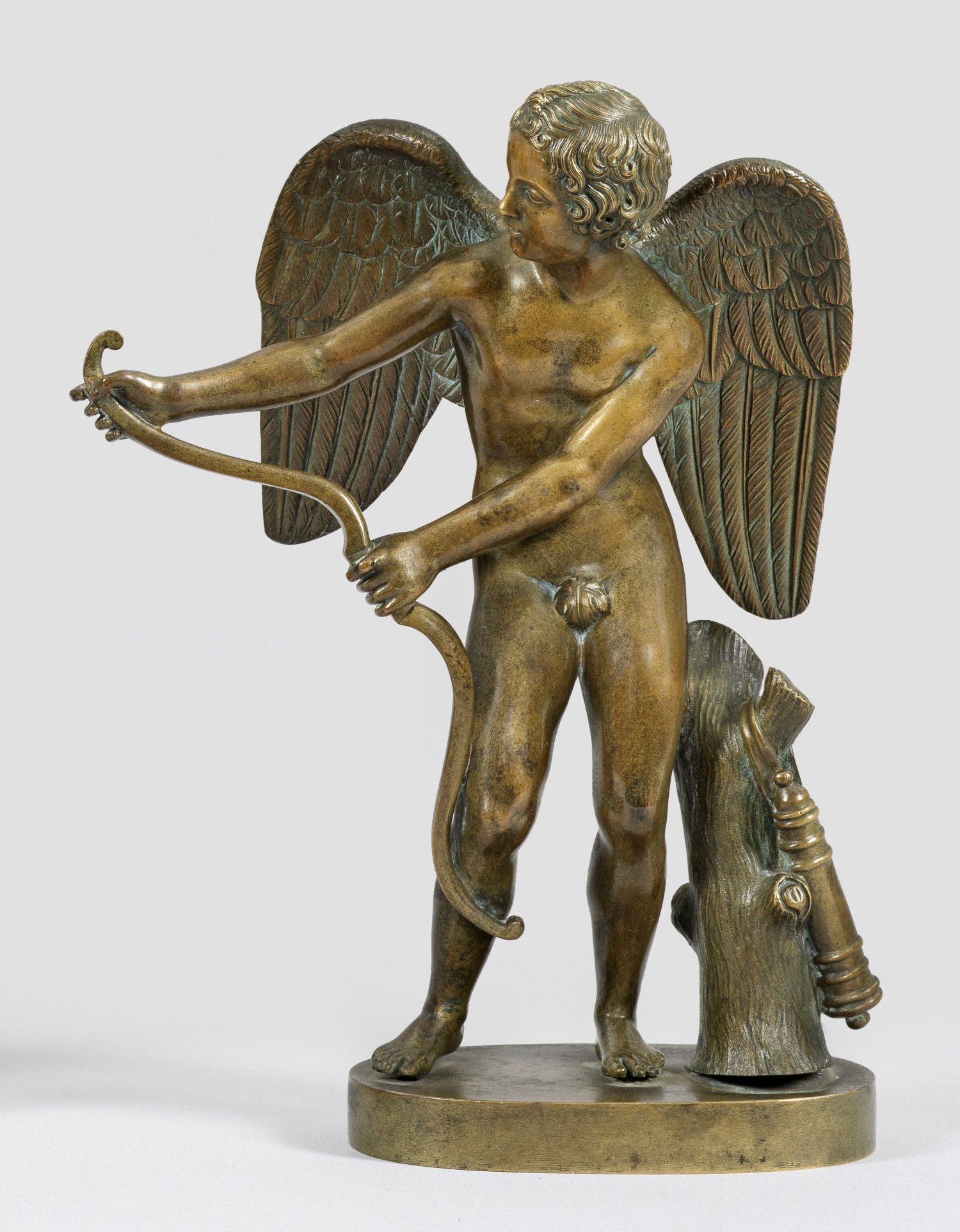 Bronze, goldbraune Patina. Fein und subtil ausgeführte, vollplastische Statuette als "Grand Tour"-Objekt nach einer antiken römischen, kaiserzeitlichen Marmorskulptur des 2. Jhs. n. Chr. (nach einer verlorenen Bronzestatue des Lysippos aus der Zeit um 350-330 v. Chr.) in den Kapitolinischen Museen in Rom. H. 22,5 cm.