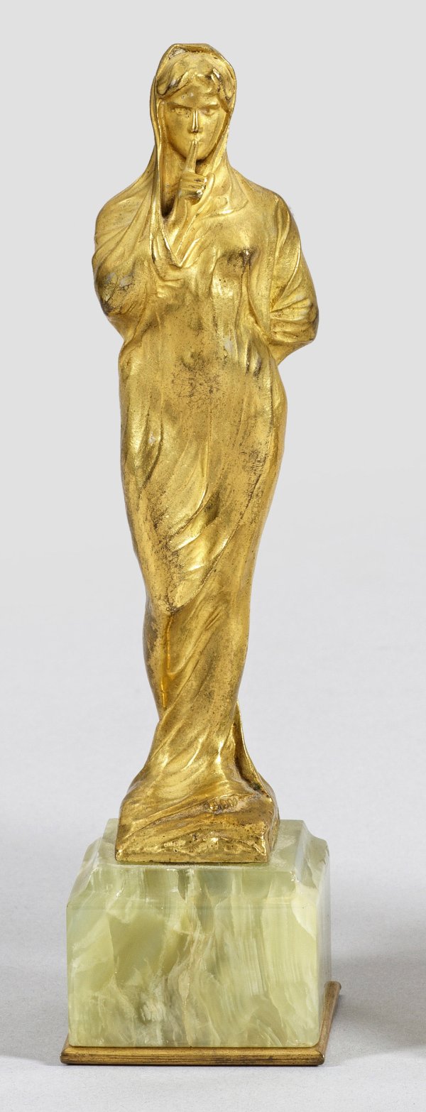Kleine symbolistische Statuette einer Vestalin als Allegorie der Verschwiegenheit oder des Geheimnisses