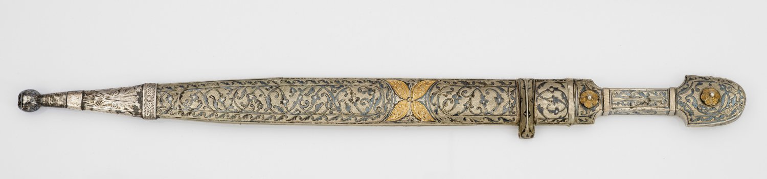 A Caucasus parcel-gilt silver kindjal with sheath. Minor flaws.
