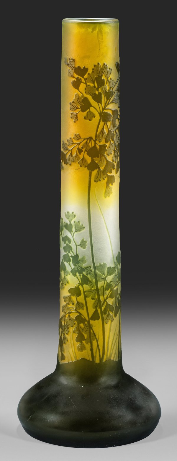 Lot 109: Große Gallé-Stangenvase mit "Fougerè"-Farndekor