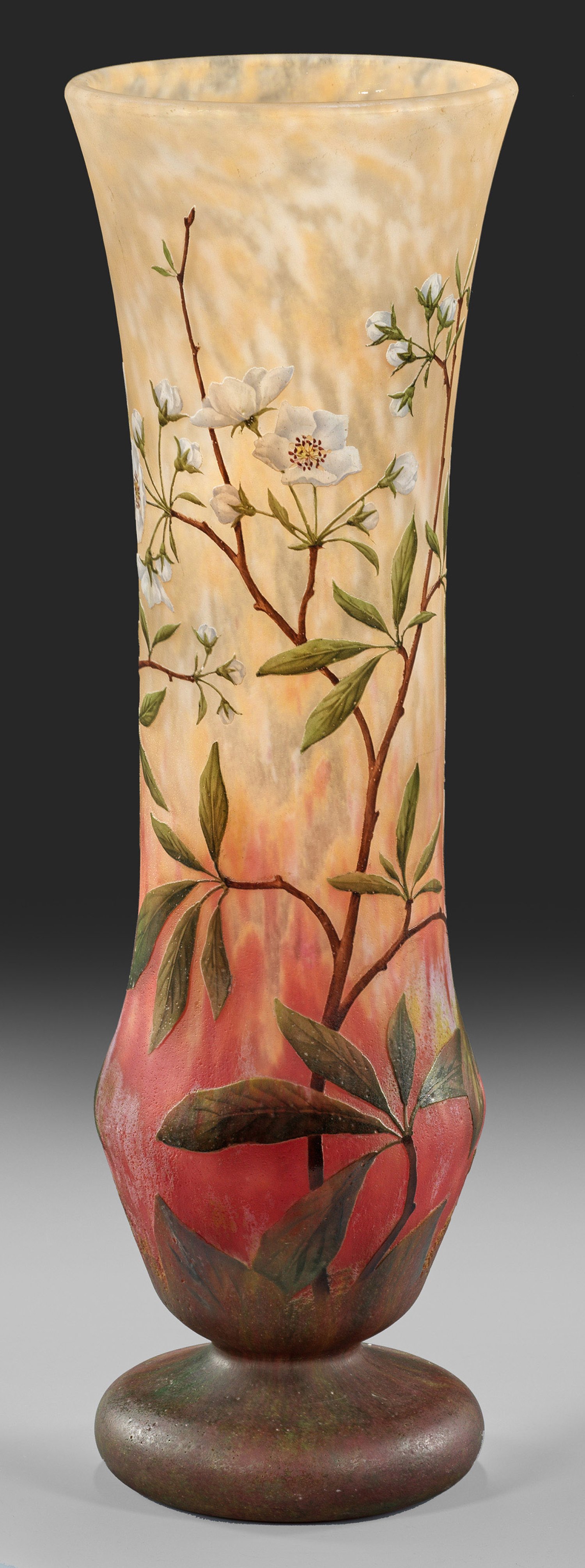Lot 113: Große Vase mit Kirschblütenzweig-Dekor von Daum Frères